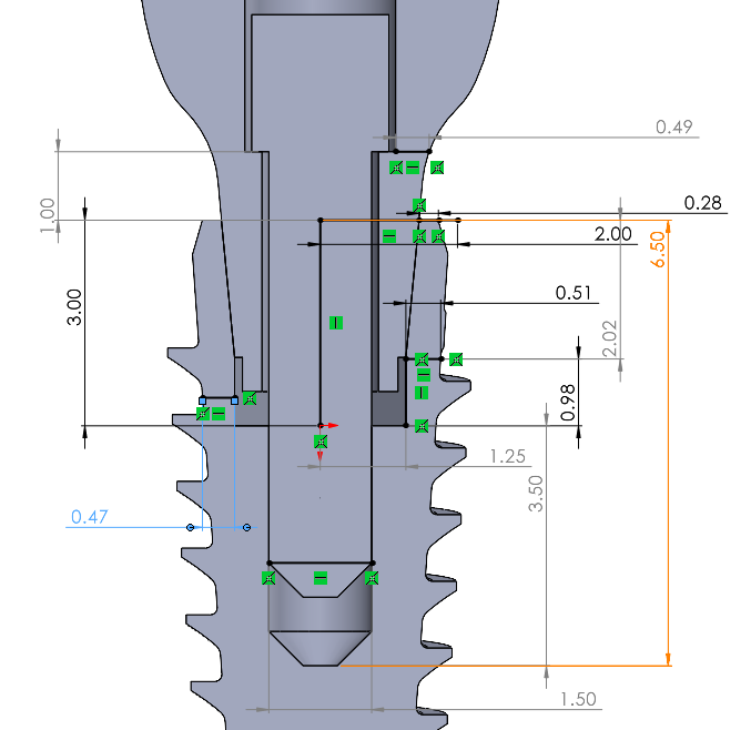 In the beginning we want to model the abutment to be non-indexed (without spline region), then the opinion settles down on modeling it with the hex. No system had been presented with an adequate knowledge about dimensions. The knowledge about clearances and tolerances in the implant dentistry is so scarce. The best way is to choose official 3D File or build them from catalogue, where we had followed the latter method.